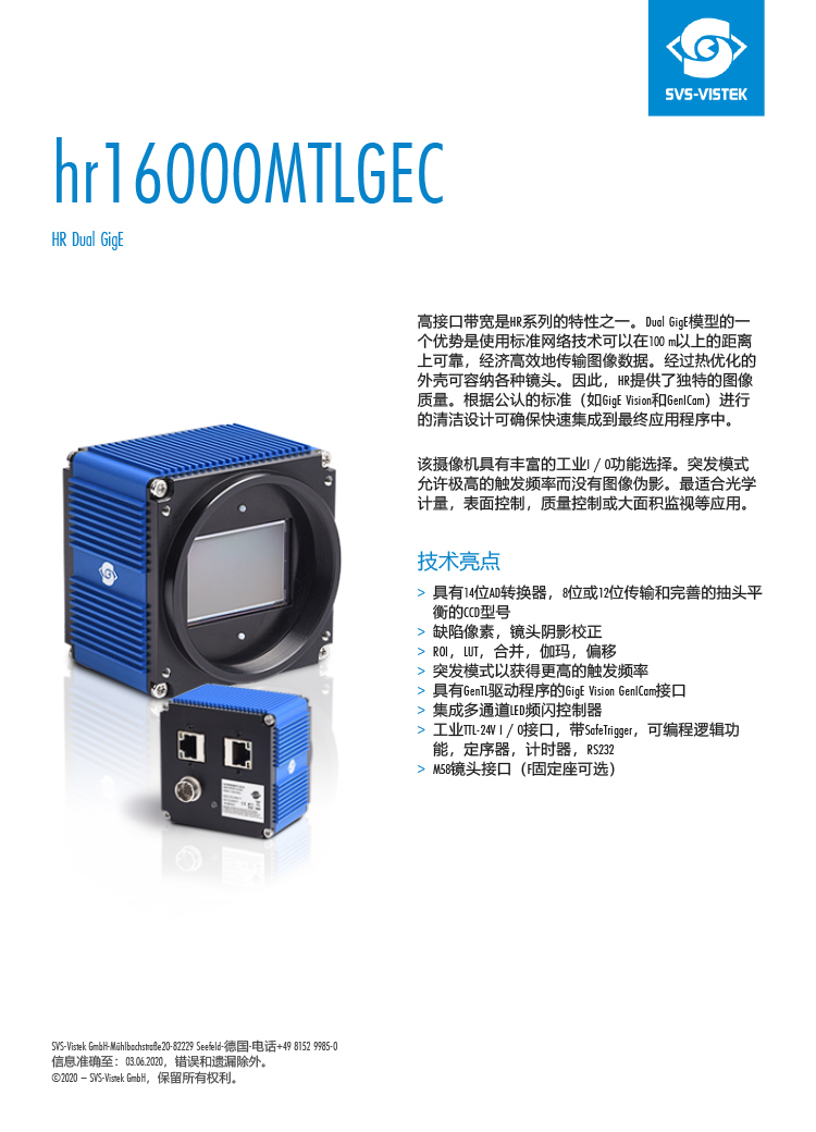 • 所属分类:SVS相机